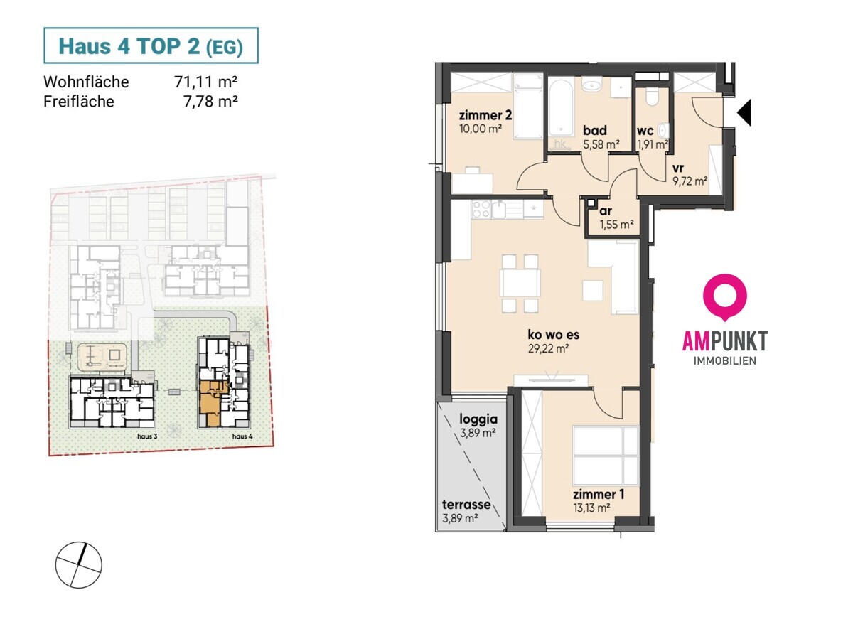 Diese Wohnung ist Teil eines neuen Wohnprojekts in Schalchen, bei dem insgesamt 22 geförderte Mietwohnungen samt Tiefgarage entstehen. Die 2- und 3-Zimmer-Wohnungen mit Wohnflächen zwischen ca. 48 und 71 m² verfügen je nach Einheit über eine Terrasse, Loggia oder einen Balkon – für Menschen, die Wert auf Wohnqualität und klare Raumkonzepte legen.