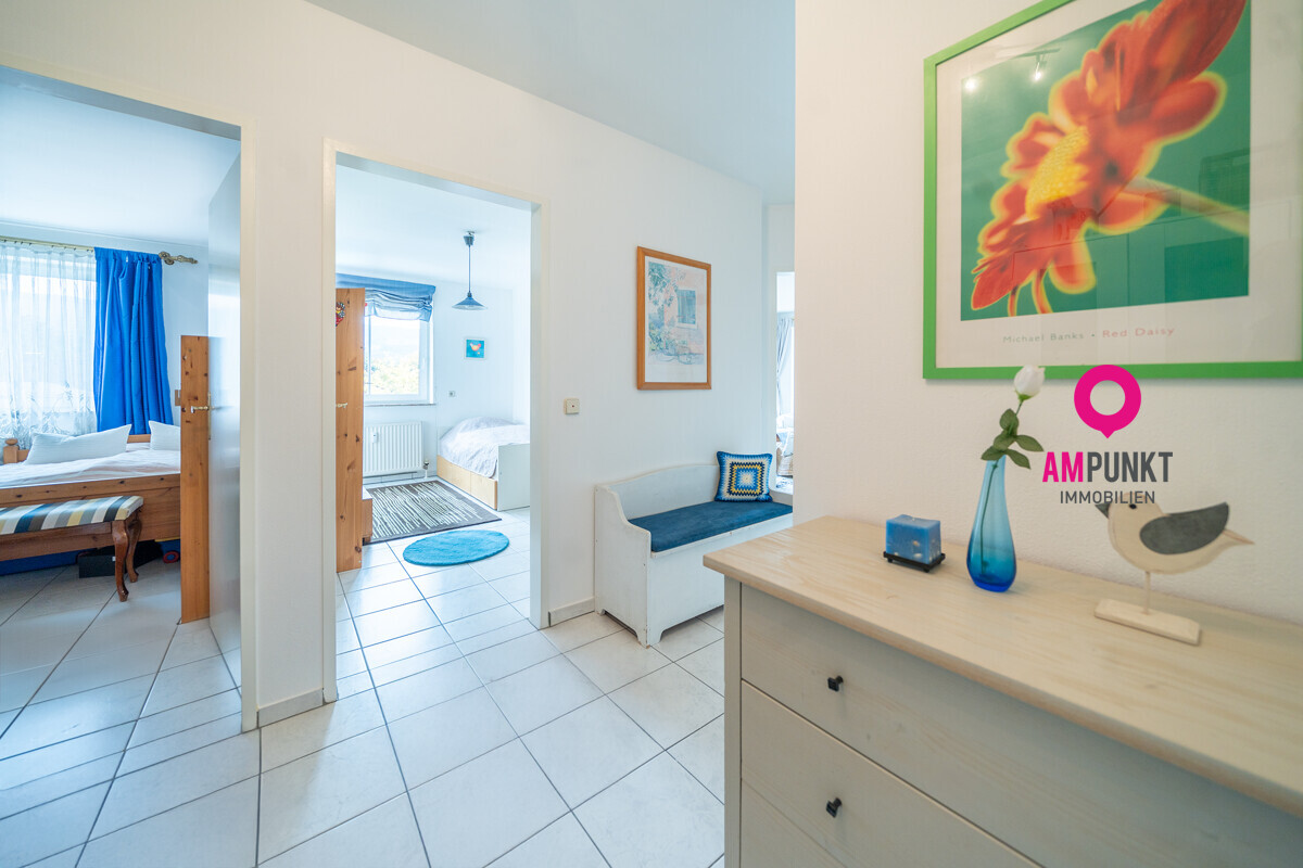 Alles ist gut durchdacht: Ein freundlicher Vorraum, ein heller Wohn- und Essbereich mit Balkon ins Grüne – genau richtig für die erste Tasse Kaffee am Morgen oder den Feierabend im Sommer.
