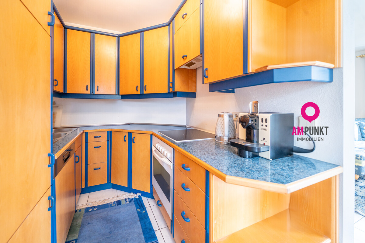 Die Küche ist gleich daneben – praktisch, kompakt und mit allem ausgestattet, was man täglich braucht. Wer es offener mag, kann die Wand zum Wohnzimmer entfernen und so einen großzügigen Wohn- und Essbereich mit offener Küche schaffen.