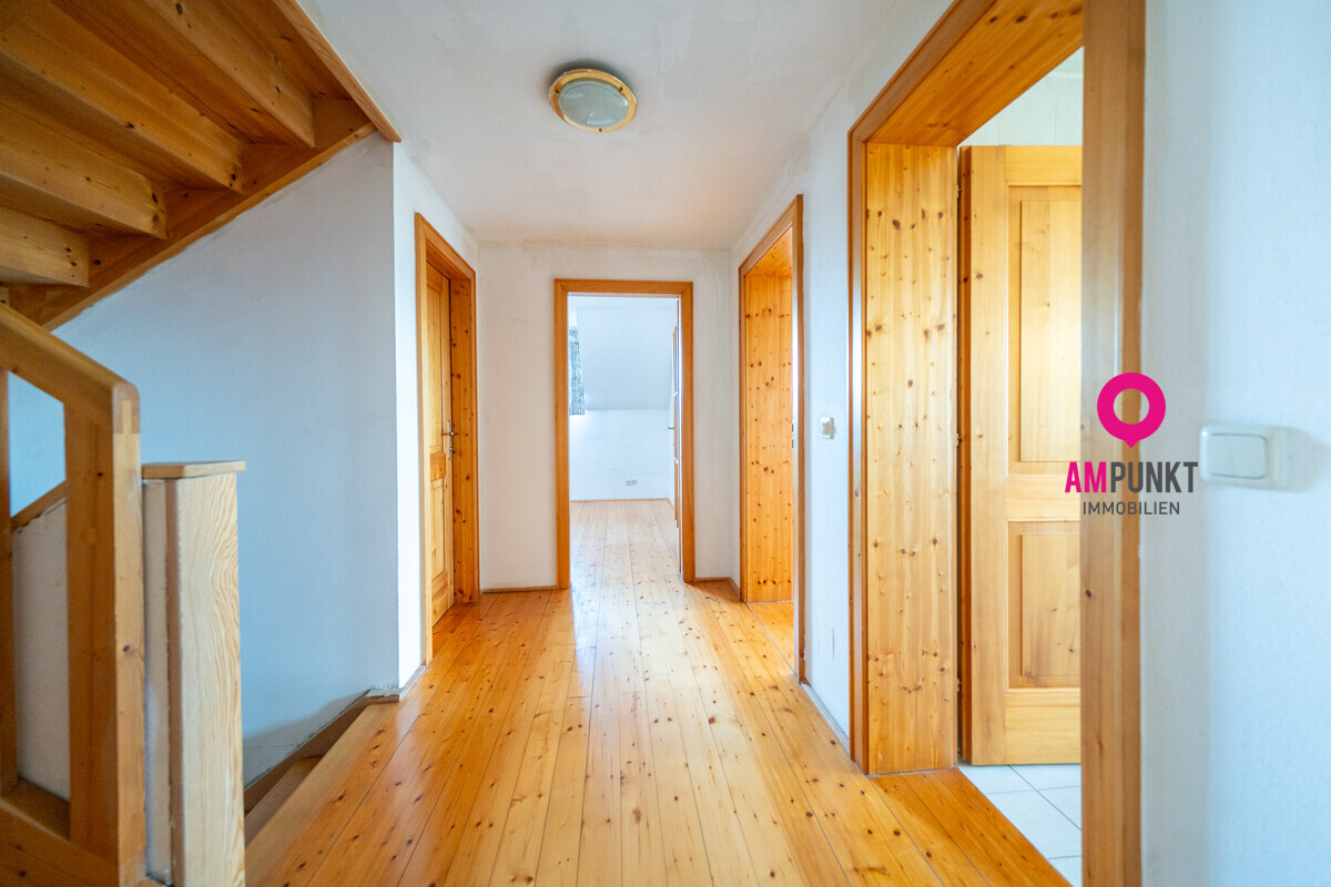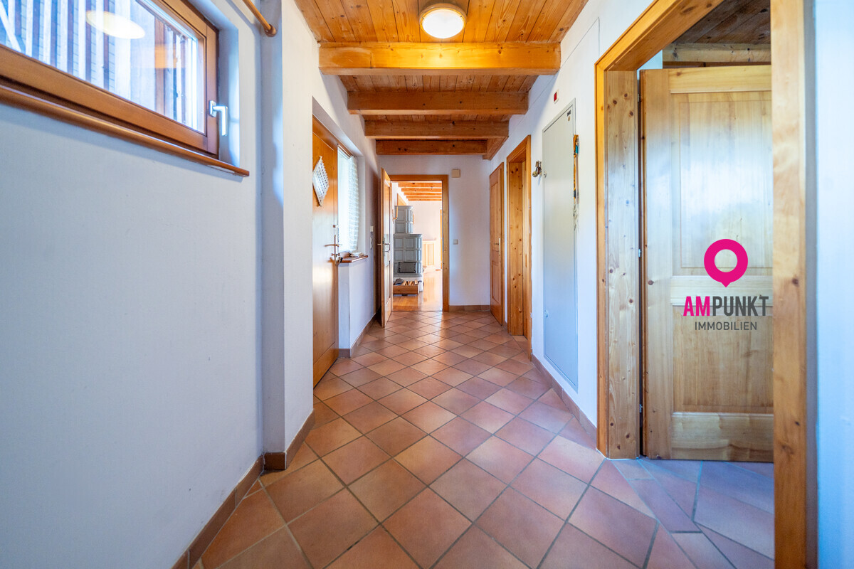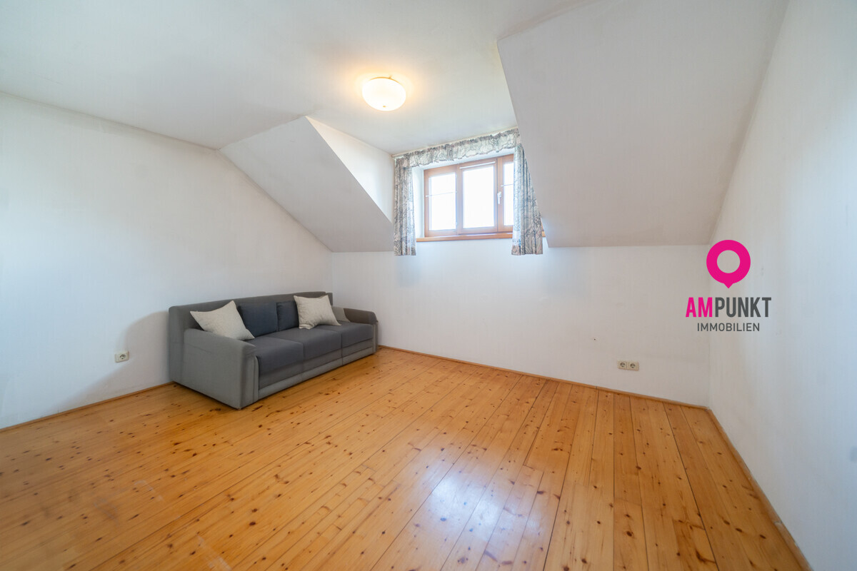 Dort, wo jedes Fenster ein Stück Sonne einfängt... In dieser ruhigen Siedlung in Seekirchen spürt man noch, wie Wohnen entschleunigt sein kann. Kinder fahren mit’m Radl durch die Siedlung, Nachbarn plaudern übers Gartentor hinweg, und abends riecht’s nach Gegrilltem und Sommer. Am Ende der Reihe steht dieses Reiheneckhaus. Südostseitig ausgerichtet, hell, gemütlich und mit dieser besonderen Wärme, die man nicht bauen kann – die entsteht. Rund 150m² Wohnfläche verteilen sich auf drei Ebenen – durchdacht geplant und mit vielen Möglichkeiten. Im Erdgeschoß bildet der Wohn- und Essbereich das Herzstück des Hauses: großzügig, lichtdurchflutet und mit direktem Zugang auf die Terrasse und in den Garten. Durch die großen Türen fällt das Sonnenlicht bis tief in den Raum, und wenn im Winter der Kachelofen knistert, ist’s drinnen so richtig heimelig. Die Küche liegt gleich daneben – funktional und kompakt. Und wer von einem offenen Wohnkonzept träumt: Die Wand zwischen Küche und Wohnzimmer ist nicht tragend – hier lässt sich also ein moderner, offener Lebensraum schaffen, in dem Kochen, Essen und Wohnen eins werden. Ebenfalls im Erdgeschoß: eine Gästetoilette sowie ein zusätzlicher Raum – perfekt als Homeoffice, Gästezimmer oder einfach nur Stauraum, ganz wie man’s braucht. Der Garten ist liebevoll angelegt, überschaubar und trotzdem mit allem, was das Herz begehrt. Platz für Liegestuhl, Kinder, Kräuter und laue Sommerabende. Und im Gartenhaus findet alles seinen Platz – vom Rasenmäher bis zum Lieblingswerkzeug. Im Obergeschoß liegen drei Kinderzimmer, das Elternschlafzimmer, ein helles Bad und eine separate Toilette – praktisch für den Familienalltag. Im Dachgeschoß warten zwei gemütliche Räume mit Dachschrägen – ideal als Rückzugsort, Atelier oder Spielzimmer. Der Keller bietet mit seinen rund 73 Quadratmetern richtig viel Platz – ob Hobby, Stauraum oder Werkstatt. Besonders praktisch: Er ist sowohl vom Hausinneren als auch von außen begehbar. Die Garage mit etwa 22 Quadratmetern liegt auf der anderen Seite – im Sommer parkt Ihr Auto angenehm kühl, im Winter eisfrei. Gebaut wurde das Haus 1988 – solide, beständig, mit Naturmaterialien. Geheizt wird mit Öl eine wassergeführte Wandheizung, 2009 kamen Solarpaneele zur Warmwasseraufbereitung dazu. Das Grundstück umfasst rund 353 Quadratmeter – groß genug, um das Leben im Grünen zu genießen, und trotzdem pflegeleicht. Dieses Haus erzählt keine Hochglanzgeschichte. Es erzählt vom echten Leben – von Familie, Zusammenhalt, Gartenarbeit, Lachen, Heimkommen. Ein Ort, wo man sich nicht vorstellen muss, wie’s sich anfühlt, da zu wohnen – man spürt es vom ersten Moment an. Haben wir Ihr Interesse geweckt? Dann fordern Sie gleich das Exposé an!