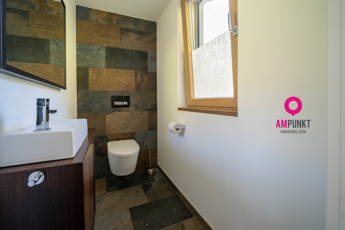 Im Galeriezimmer haben Sie außerdem ein Gäste-WC. Wie praktisch.